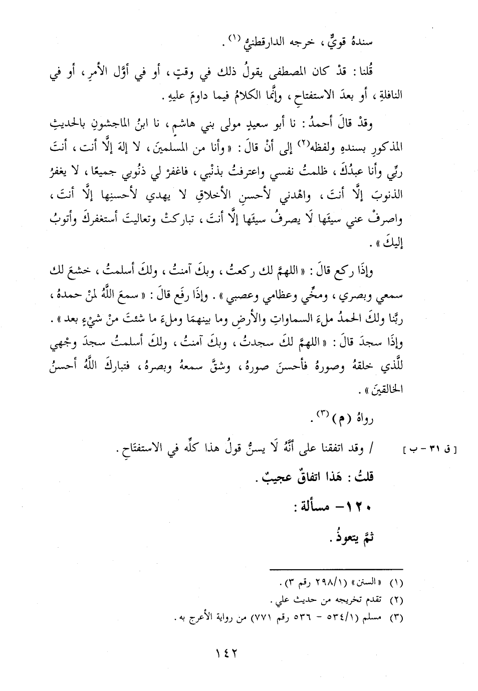 [ق 31 - ب] / وَقد اتفقنا على أَنه لَا يسن قَول هَذَا كُله فِي الاستفتاح.