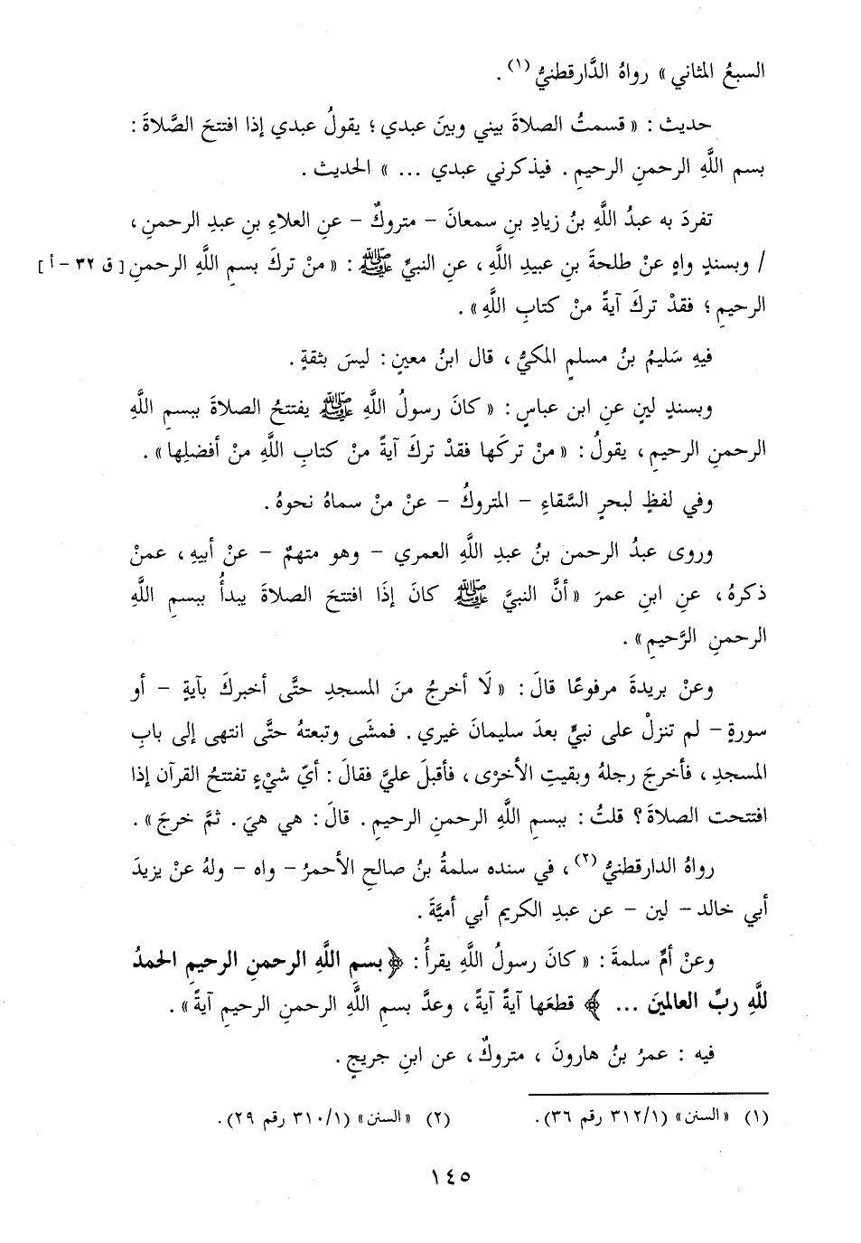السَّبع المثاني " رَوَاهُ الدَّارقطنيُّ.