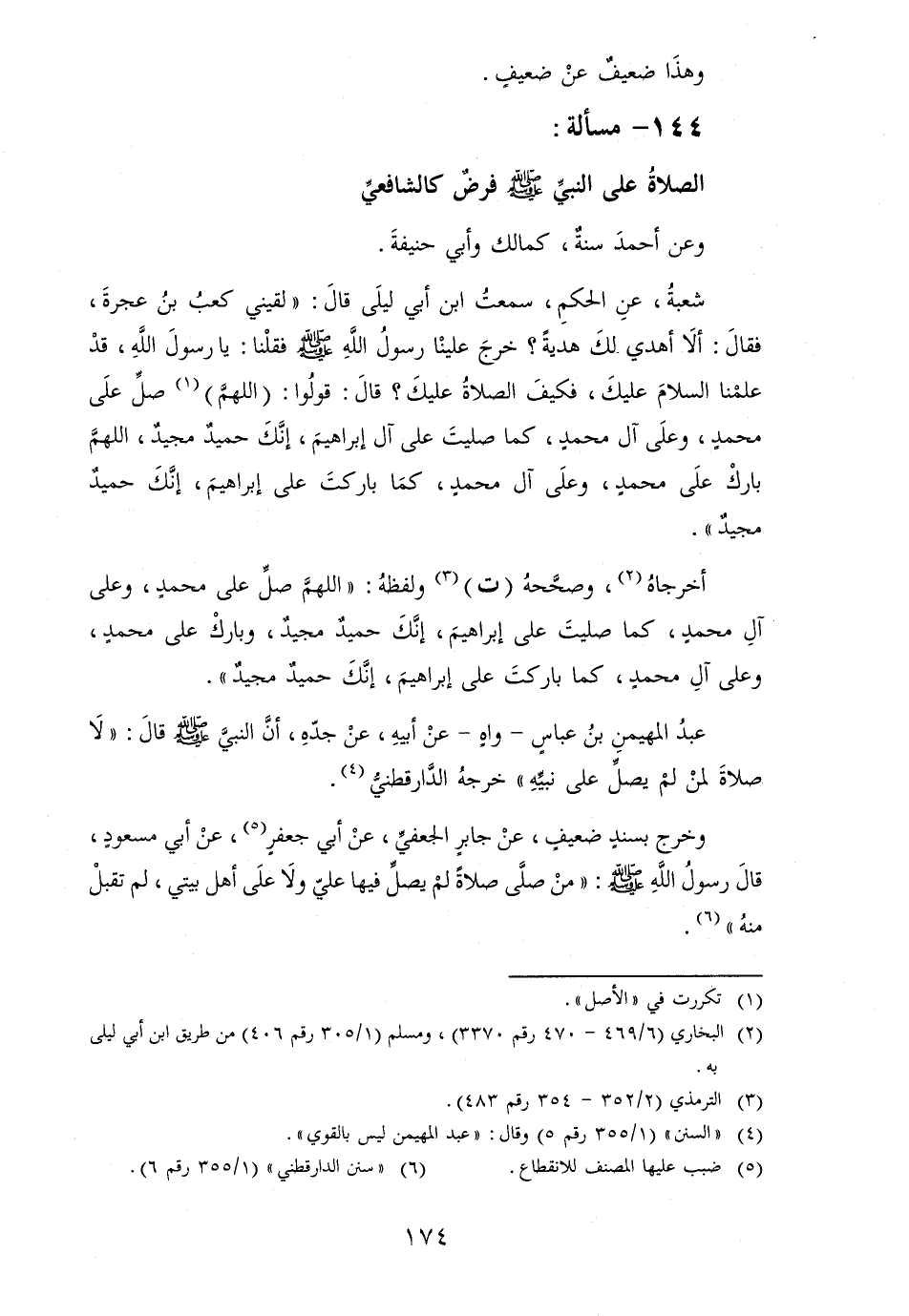 الصلاةُ على النبيِّ [صلى الله عَلَيْهِ وَسلم] فرضٌ كالشافعيِّ