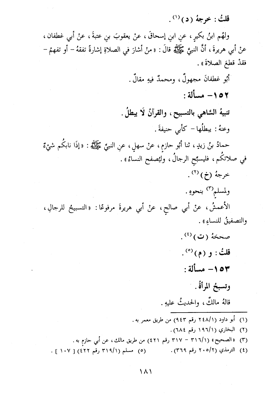 حَمَّاد بن زيد، ثَنَا أَبُو حَازِم، عَن سهل، عَن النَّبِي [صلى الله عَلَيْهِ وَسلم] : " إِذا نابكم شيءٌ فِي صَلَاتكُمْ، فليسبح الرِّجَال، وليُصفح النساءُ ".