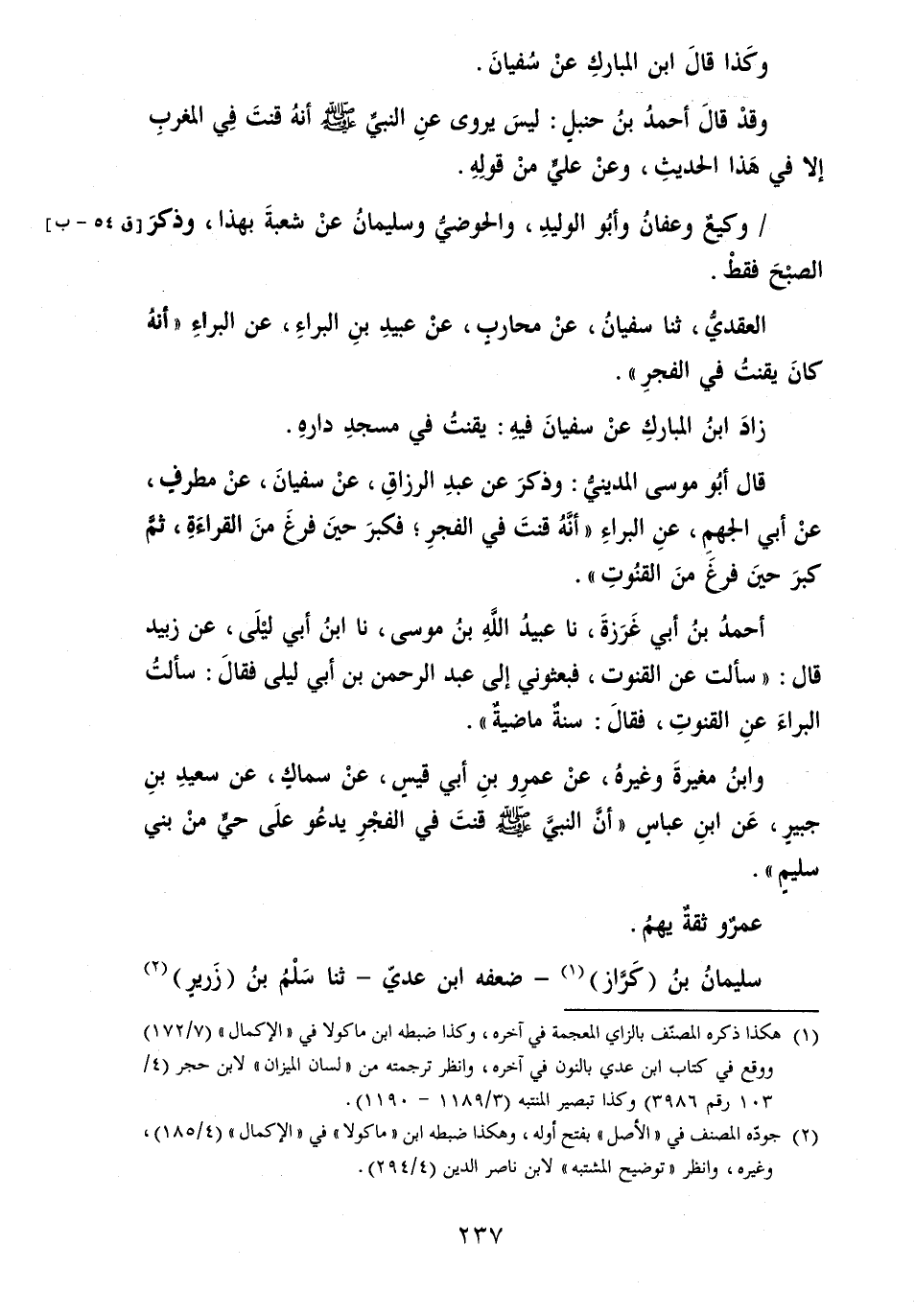 وَابْن مُغيرَة وَغَيره، عَن عَمْرو بن أبي قيس، عَن سماكٍ، عَن سعيد بن جُبَير، عَن ابْن عباسٍ " أَن النَّبِي [صلى الله عَلَيْهِ وَسلم] قنتَ فِي الفجرِ يَدْعُو على حَيّ من بني سليمٍ ".