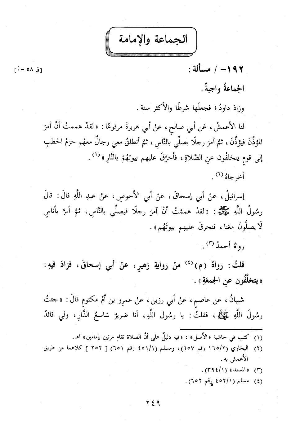 192 -[ق 58 - أ] مَسْأَلَة: