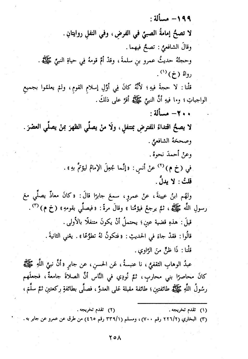 وحجته حَدِيث عَمْرو بن سَلمَة، وَقد أم قومه فِي حَيَاة النَّبِي [صلى الله عَلَيْهِ وَسلم] .