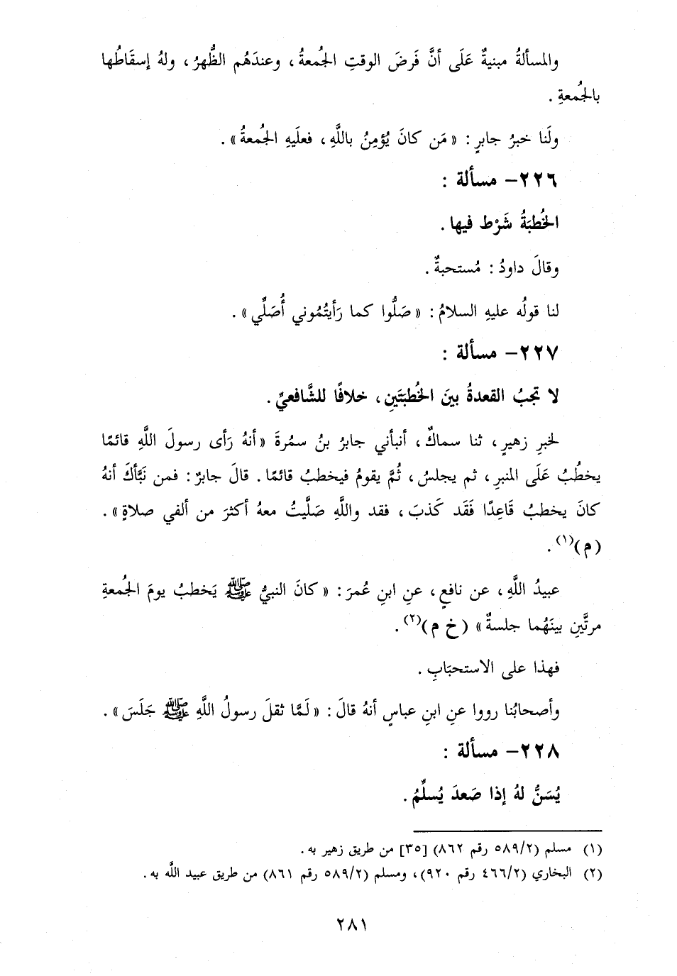 226 - مَسْأَلَة: