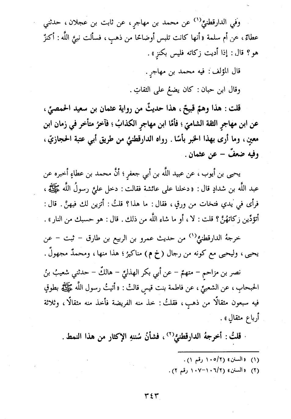 وَفِي الدارقطنيُّ عَن مُحَمَّد بن مهاجرٍ، عَن ثَابت بن عجلَان، حَدثنِي عطاءٌ، عَن أم سَلمَة " أَنَّهَا كَانَت تلبس أَوْضَاحًا من ذهبٍ، فَسَأَلت نبيَّ الله: أكنزٌ هُوَ؟ قَالَ: إِذا أدّيت زَكَاته فَلَيْسَ بكنزٍ ".