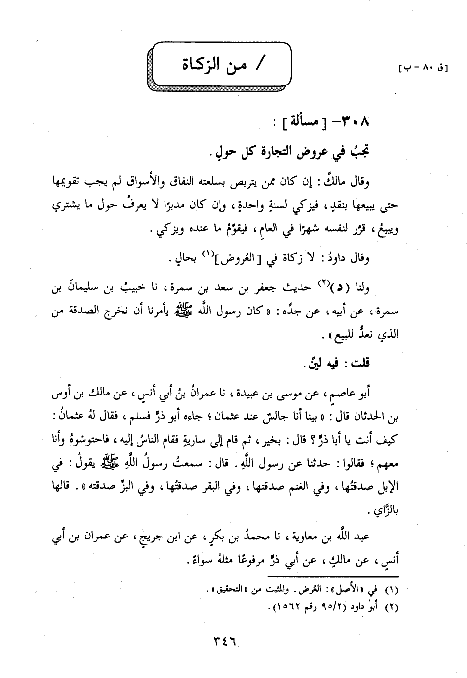تجبُ فِي عرُوض التِّجَارَة كل حولٍ.