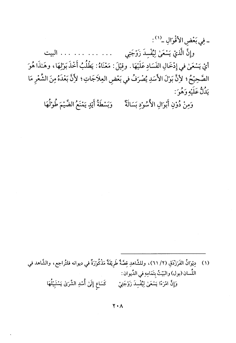 (¬1) دِيوَانُ الفَرَزْدَقِ (2/ 61)، وللشَّاهدِ قِصَّةٌ طَرِيفَةٌ مَذْكُوْرَةٌ في ديوانه فلتُراجع، والشَّاهد في اللِّسان (بول) والبَيتُ بِتَمَامِهِ في الدِّيوان: