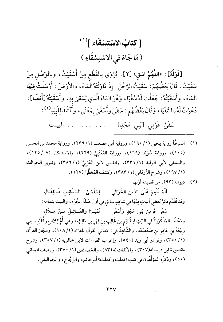 (¬1) الموطَّأ رواية يحيى (1/ 190)، ورواية أبي مصعب (1/ 239)، ورواية محمد بن الحسن (105)، ورواية سُوَيد (169)، ورواية القَعْنَبِيِّ (269)، والاستذكار (7/ 125)، والمنتقى لأبي الوليد (1/ 331)، والقبس لابن العَرَبِيِّ (1/ 386)، وتنوير الحوالك (1/ 197)، وشرح الزُّرقاني (1/ 383)، وكشف المُغَطَّى (127).