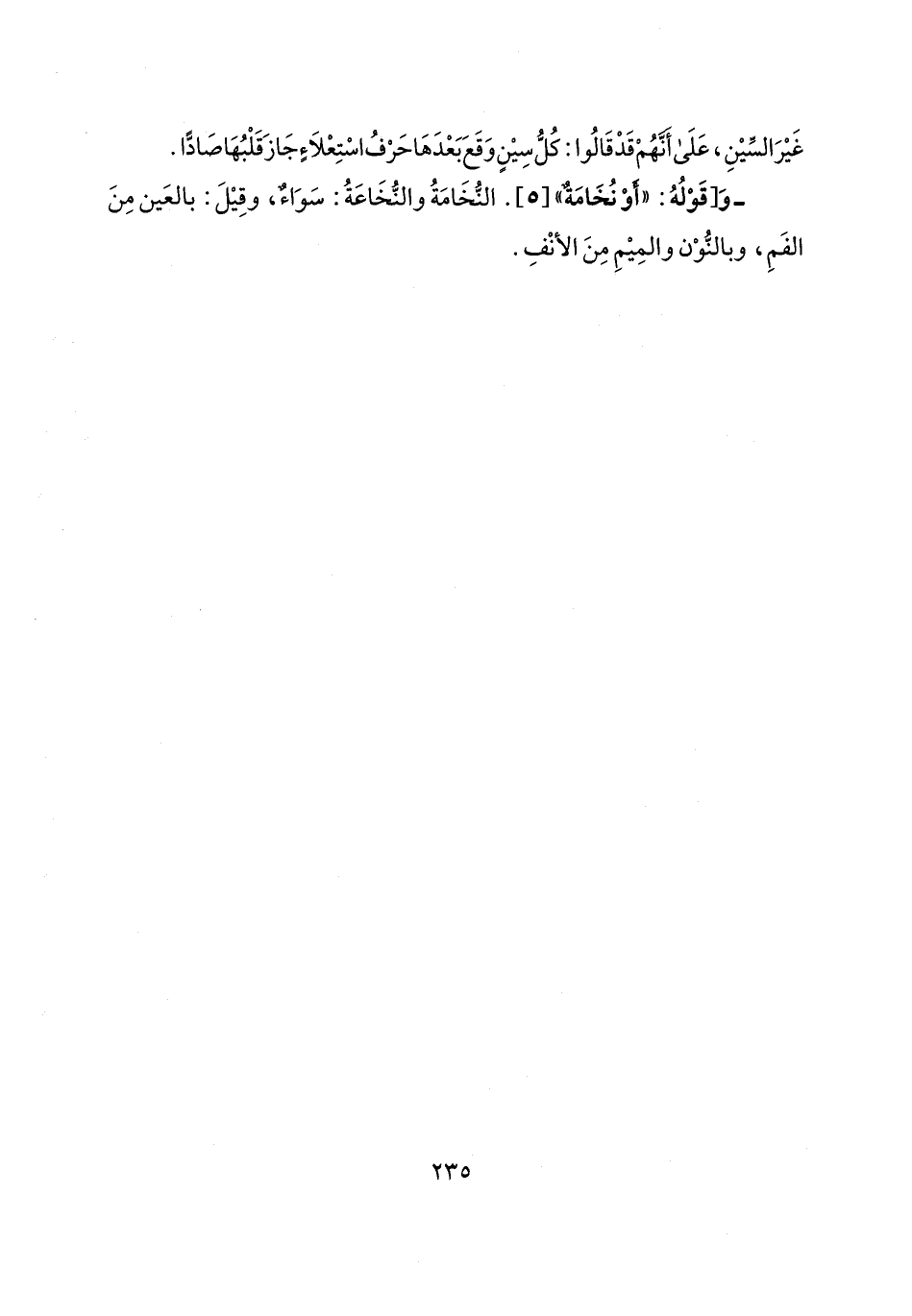 غَيرَ السِّينِ، عَلَى أَنَّهُمْ قَدْ قَالُوا: كُلُّ سِينٍ وَقَعَ بَعْدَهَا حَرْفُ اسْتِعْلاءٍ جَازَ قَلْبُهَا صَادًّا.