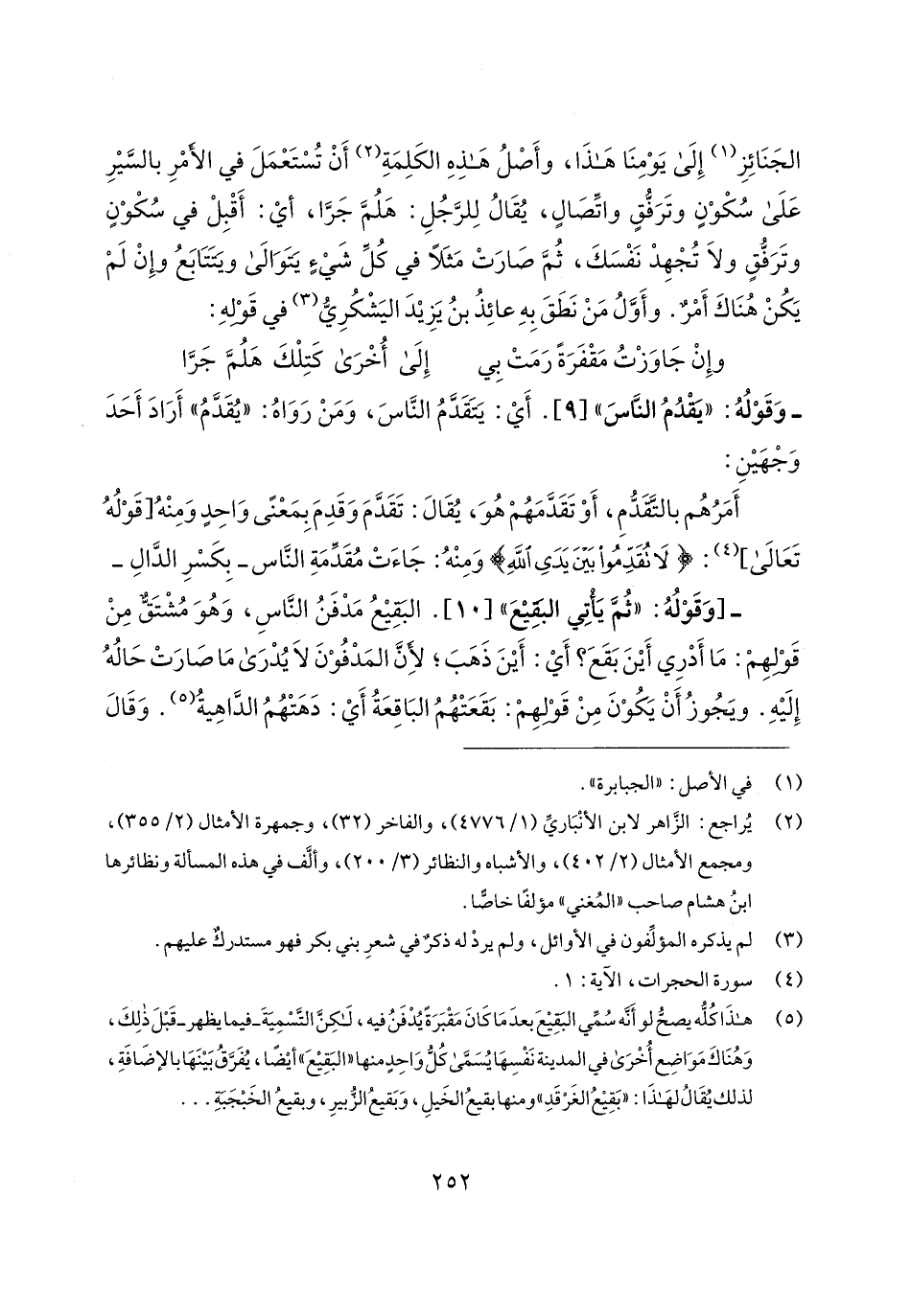 (¬2) يُراجع: الزَّاهر لابن الأنْبَاريِّ (1/ 4776)، والفاخر (32)، وجمهرة الأمثال (2/ 355)، ومجمع الأمثال (2/ 402)، والأشباه والنظائر (3/ 200)، وألَّف في هذه المسألة ونظائرها ابنُ هشام صاحب "المُغني" مؤلفًا خاصًّا.