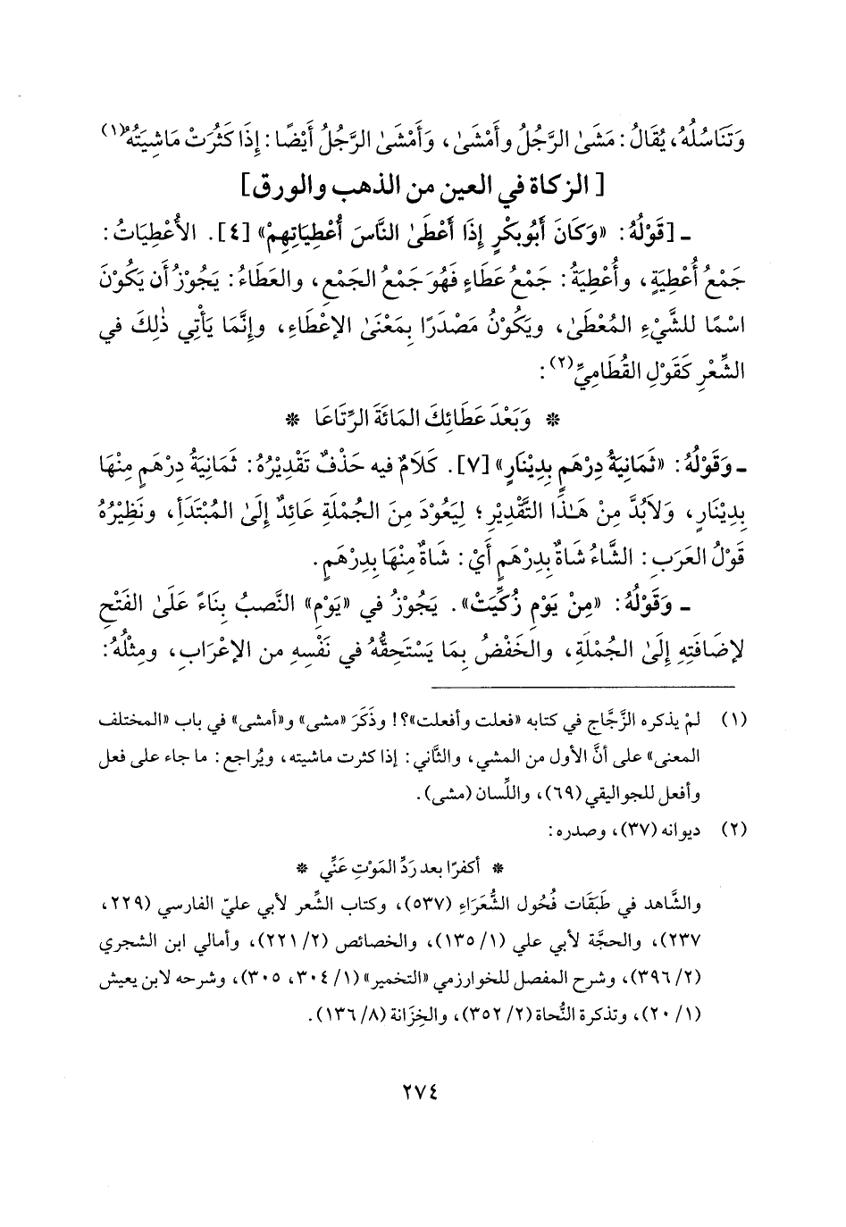 -[قَوْلُهُ: "وَكَانَ أبُو بكرٍ إِذَا أعْطَى النَّاسَ أُعْطِيَاتِهِمْ" [4]. الأُعْطِيَاتُ: جَمْعُ أُعْطِيَةٍ، وأُعْطِيَةُ: جَمْعُ عَطَاءٍ فَهُوَ جَمْعُ الجَمْعِ، والعَطَاءُ: يَجُوْزُ أَن يَكُوْنَ اسْمًا للشَّيءِ المُعْطَى، ويَكُوْنُ مَصْدَرًا بِمَعْنَى الإعْطَاءِ، وإِنَّمَا يَأْتِي ذلِكَ في الشِّعْرِ كَقَوْلِ القُطَامِيِّ (¬2):