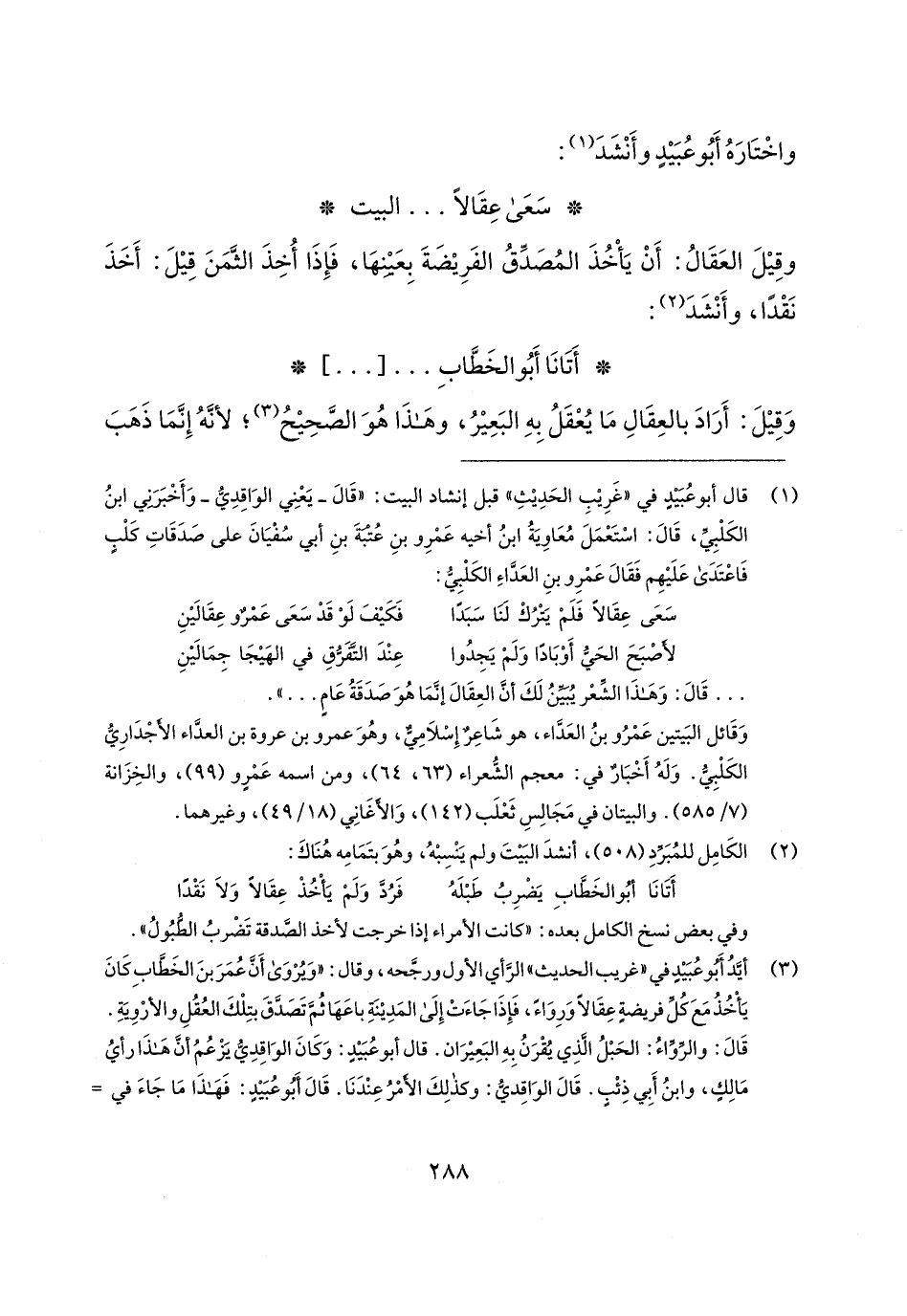 ... قَال: وَهَذَا الشِّعْر يُبَيِّنُ لَكَ أنَّ العِقَال إنَّمَا هُوَ صَدَقَةُ عَامٍ ... ".