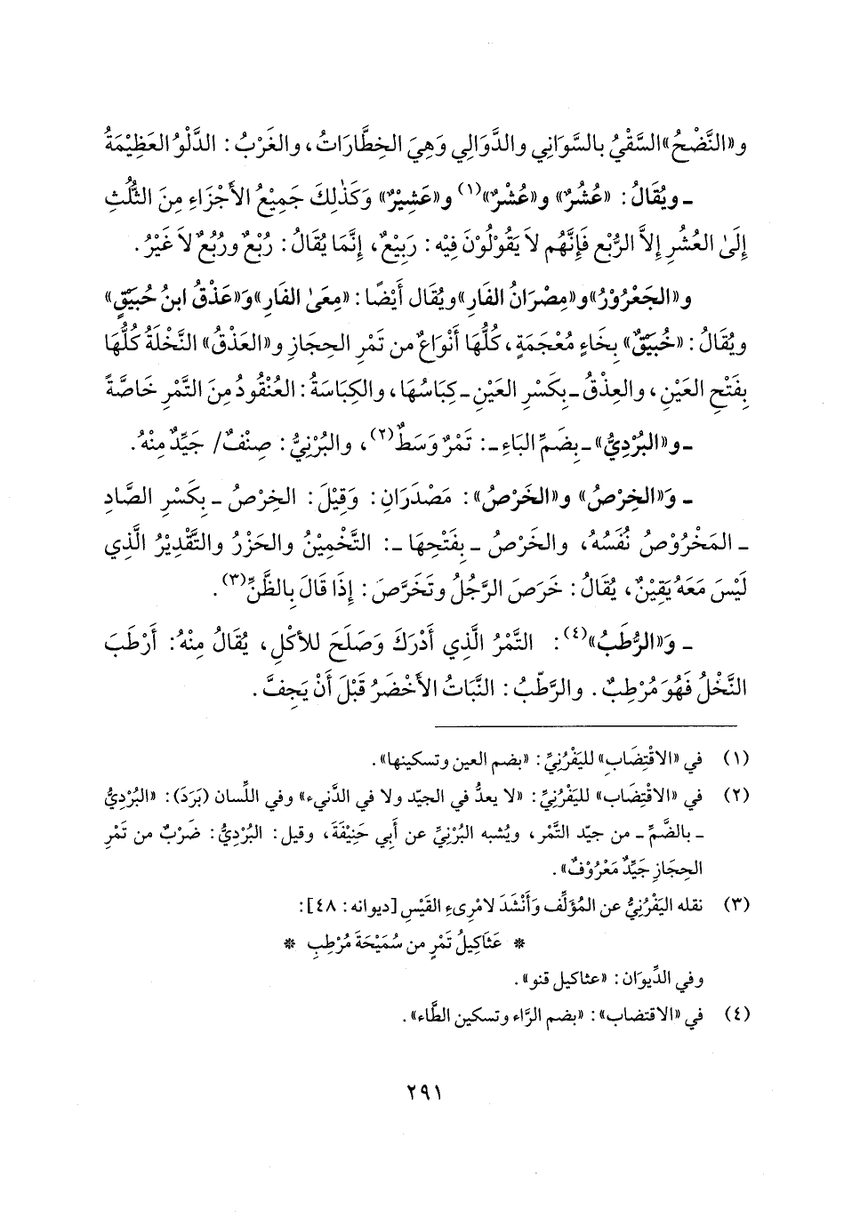 (¬2) في "الاقْتِضَاب" لليَفْرُنِيِّ: "لا يعدُّ في الجيّد ولا في الدَّنيء" وفي اللِّسان (بَرَدَ): "البُرْدِيُّ - بالضَّمِّ - من جيّد التَّمْر، ويُشبه البُرْنِيِّ عن أَبِي حَنِيفَةَ، وقيل: البُرْدِيُّ: ضَرْبٌ من تَمْرِ الحِجَازِ جَيِّدٌ مَعْرُوْفٌ".