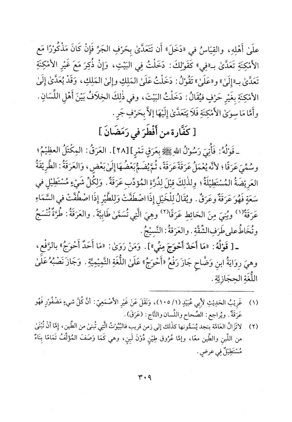 (¬1) غَرِيبُ الحَدِيثِ لأبِي عُبَيدٍ (1/ 105)، وَنَقَلَ عَن غَيرِ الأصمَعِيّ: أنَّ كُلَّ شيءٍ؛ مَضفُوْرٍ فَهُو عَرَقَةٌ. ويُراجع: الصِّحاح واللِّسان والتَّاج: (عَرَقَ).