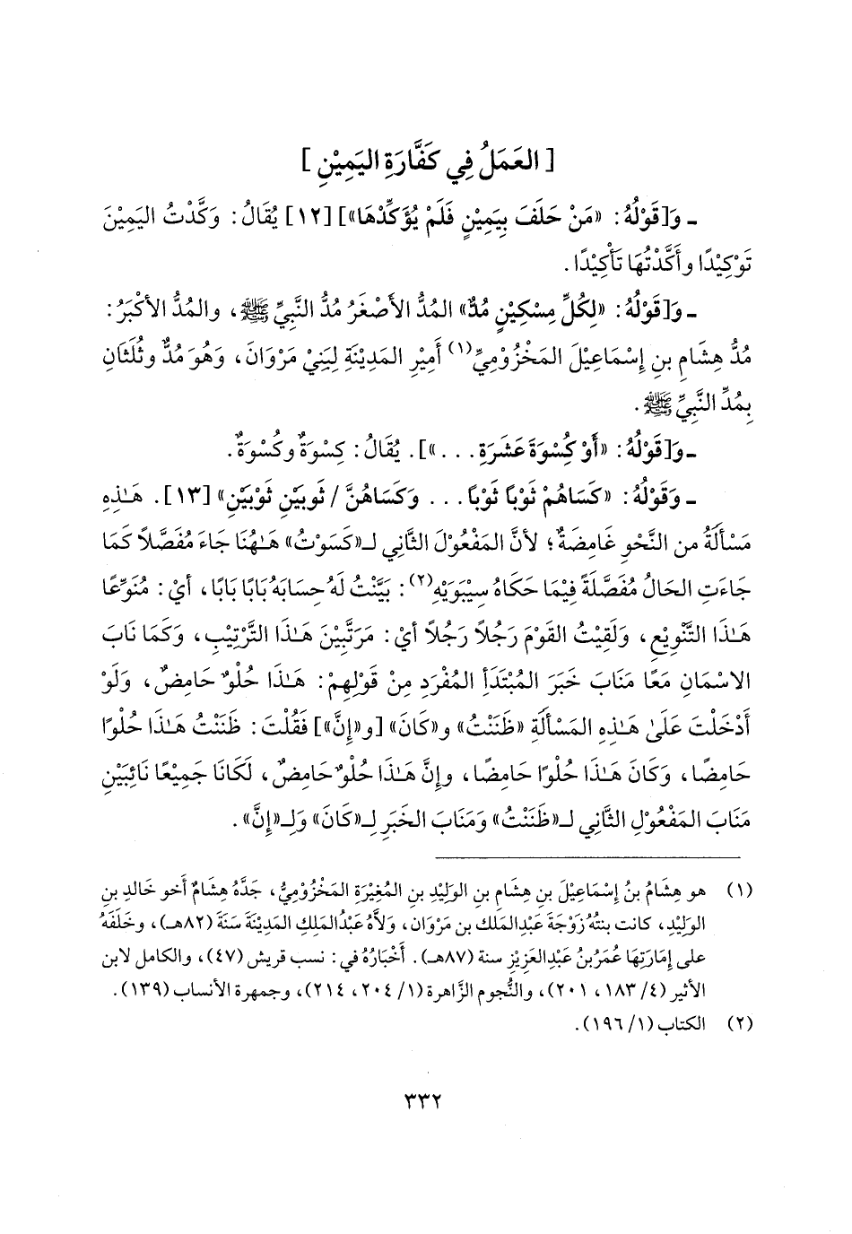 - وَ [قَوْلُهُ: "لِكُلِّ مِسْكِينٍ مُدٌّ" المُدُّ الأصْغَرُ مُدُّ النَّبِيِّ - صلى الله عليه وسلم -، والمُدُّ الأكْبَرُ: مُدُّ هِشَامِ بنِ إِسْمَاعِيلَ المَخْزُوْمِيِّ (¬1) أَمِيرِ المَدِينَةِ لِبَني مَرْوَانَ، وَهُوَ مُدّ وثُلَثَانِ بِمُدِّ النَّبِيِّ - صلى الله عليه وسلم -.