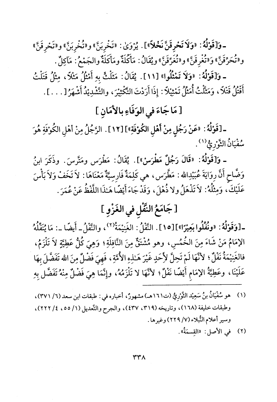(¬1) هو سُفْيَانُ بنُ سَعِيد الثَّوْرِيّ (ت 161 هـ) مشهورٌ، أخباره في: طبقات ابن سعد (6/ 371)، وطبقات خليفة (168)، وتاريخه (319، 437)، والجرح والتَّعْديل (1/ 55، 4/ 222)، وسير أعلام النبلاء (7/ 229) وغيرها.