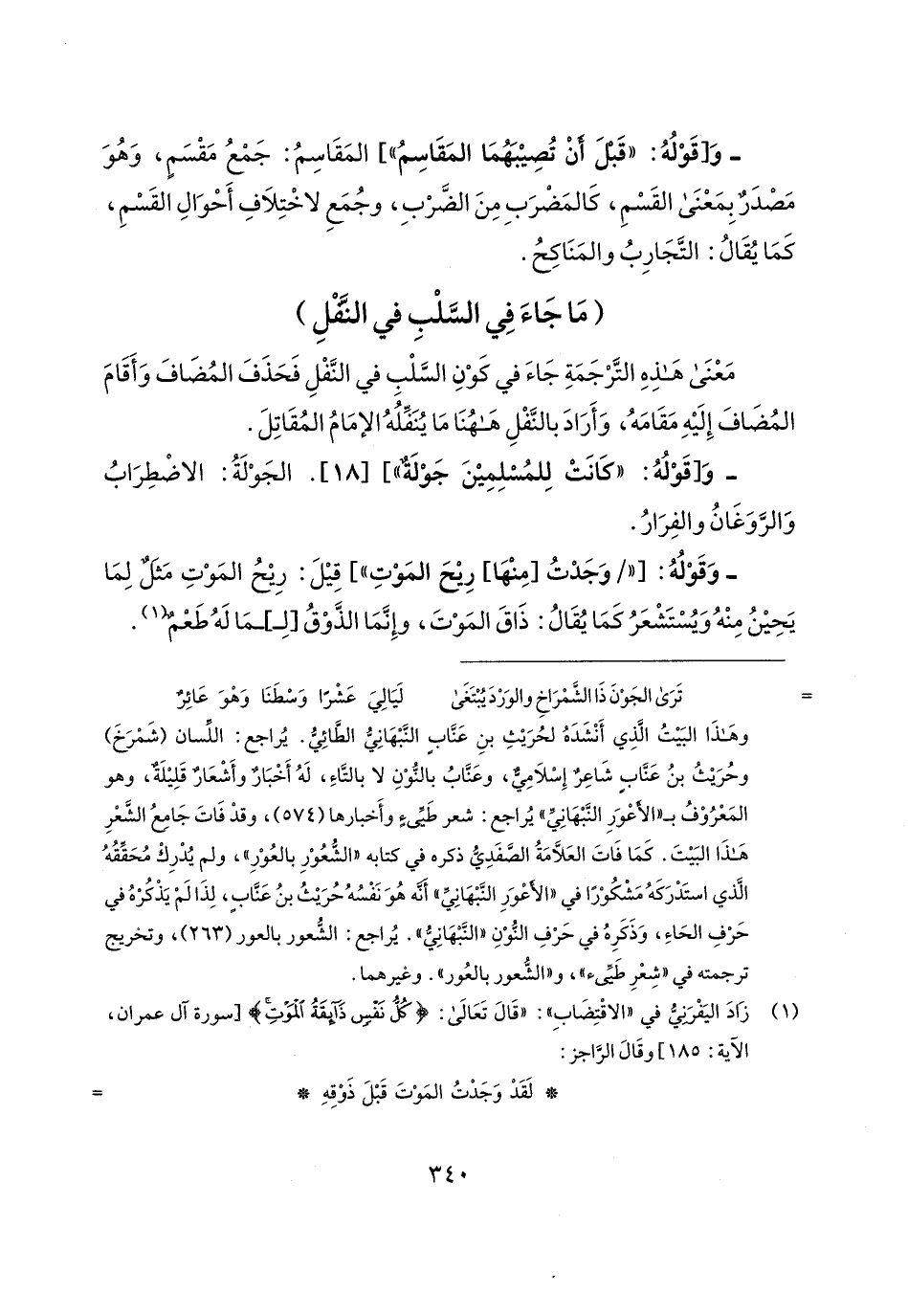 (¬1) زَادَ اليَفْرَنيُّ في "الاقْتِضَابِ": "قَال تَعَالى: {كُلُّ نَفْسٍ ذَائِقَةُ الْمَوْتِ} [سورة آل عمران، الآية: 185] وقَال الرَّاجز: