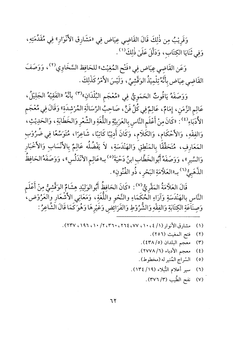 وَعَن القَاضِي عِيَاض فِي "فَتْح المُغِيْث" للحَافِظ السَّخَاوي (¬2)، وَوَصَفَ القَاضِي عِيَاض بِأَنَّهُ تِلْمِيْذُ الوَقَّشِيِّ، وَلَيْسَ الأَمْرُ كَذلِكَ.