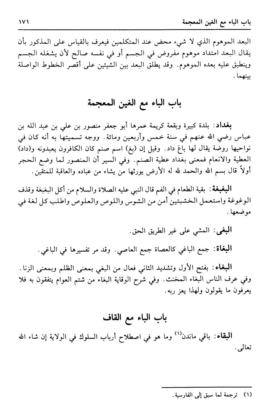 الْبَقَاء: بَاقِي ماندن وَمَا هُوَ فِي اصْطِلَاح أَرْبَاب السلوك فِي الْولَايَة إِن شَاءَ الله تَعَالَى.