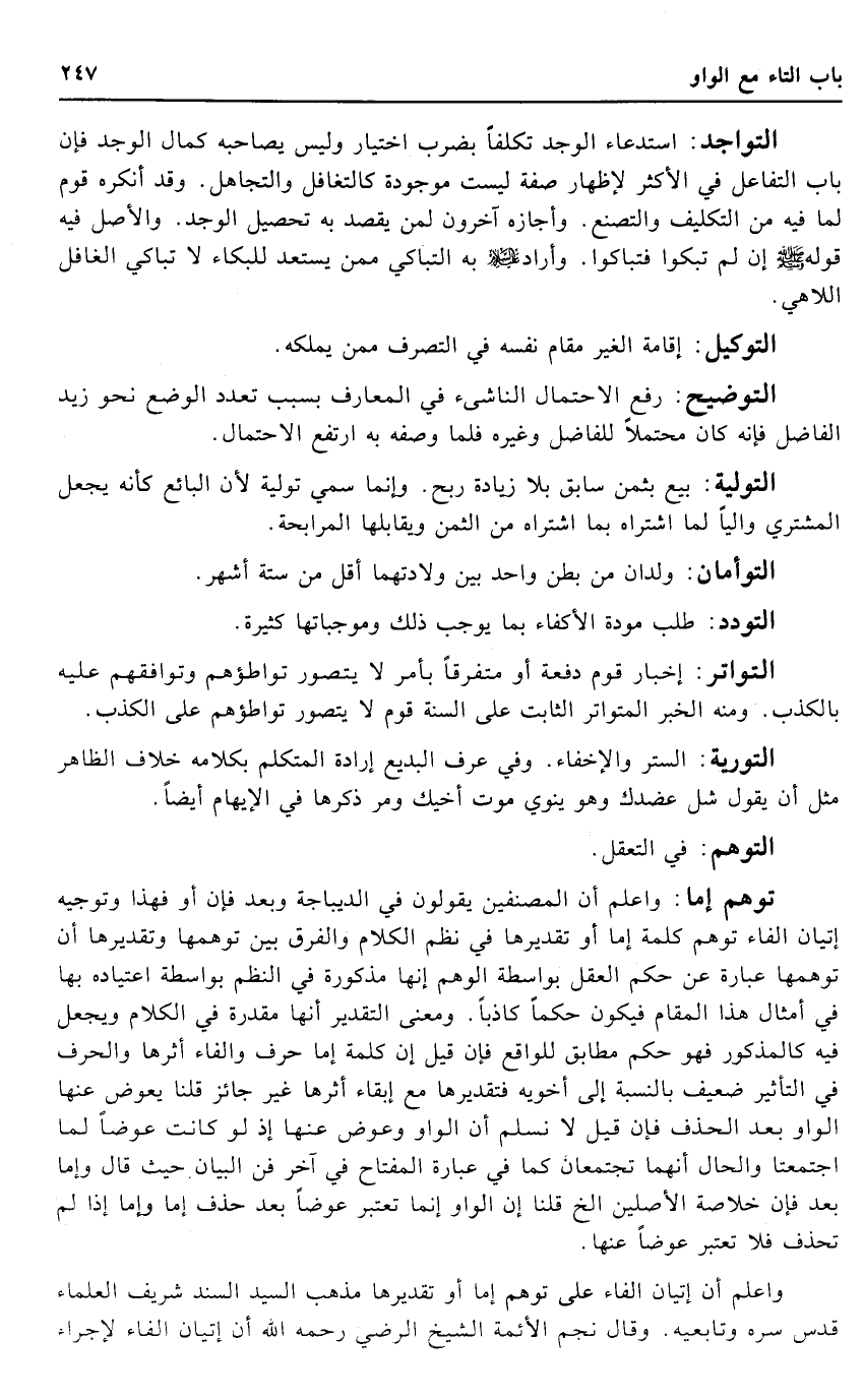 توهم إِمَّا: وَاعْلَم أَن المصنفين يَقُولُونَ فِي الديباجة وَبعد فَإِن أَو فَهَذَا وتوجيه إتْيَان الْفَاء توهم كلمة إِمَّا أَو تقديرها فِي نظم الْكَلَام وَالْفرق بَين توهمها وتقديرها أَن توهمها عبارَة عَن حكم الْعقل بِوَاسِطَة الْوَهم إِنَّهَا مَذْكُورَة فِي النّظم بِوَاسِطَة اعتياده بهَا فِي أَمْثَال هَذَا الْمقَام فَيكون حكما كَاذِبًا. وَمعنى التَّقْدِير أَنَّهَا مقدرَة فِي الْكَلَام وَيجْعَل فِيهِ كالمذكور فَهُوَ حكم مُطَابق للْوَاقِع فَإِن قيل إِن كلمة إِمَّا حرف وَالْفَاء أَثَرهَا والحرف فِي التَّأْثِير ضَعِيف بِالنِّسْبَةِ إِلَى أَخَوَيْهِ فتقديرها مَعَ إبْقَاء أَثَرهَا غير جَائِز قُلْنَا يعوض عَنْهَا الْوَاو بعد الْحَذف فَإِن قيل لَا نسلم أَن الْوَاو وَعوض عَنْهَا إِذْ لَو كَانَت عوضا لما اجتمعتا وَالْحَال أَنَّهُمَا تجتمعان كَمَا فِي عبارَة الْمِفْتَاح فِي آخر فن الْبَيَان حَيْثُ قَالَ وَإِمَّا بعد فَإِن خُلَاصَة الْأَصْلَيْنِ الخ قُلْنَا إِن الْوَاو إِنَّمَا تعْتَبر عوضا بعد حذف إِمَّا وَإِمَّا إِذا لم تحذف فَلَا تعْتَبر عوضا عَنْهَا.