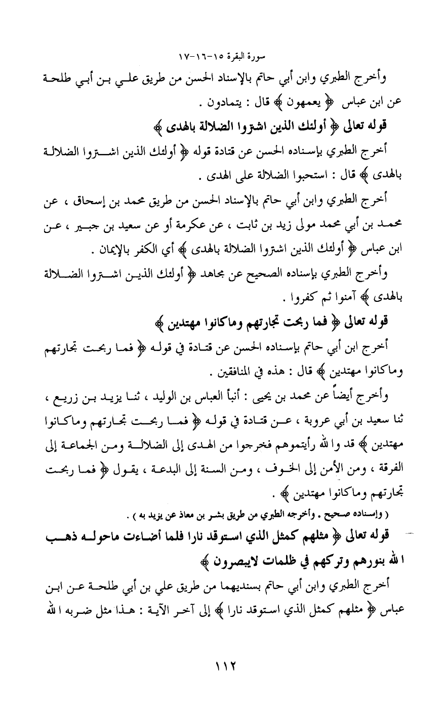 أخرج الطبري بإسناده الحسن عن قتادة قوله (أُولَئِكَ الَّذِينَ اشْتَرَوُا الضَّلالَةَ بِالْهُدَى) قال: استحبوا الضلالة على الهدى.