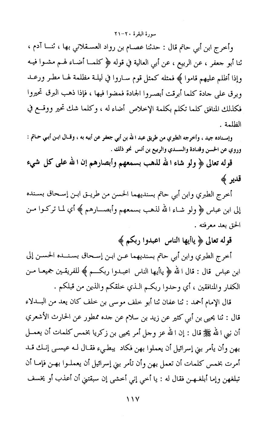 أخرج الطبري وابن أبي حاتم بسنديهما عن ابن إسحاق بسنده الحسن إلى ابن عباس قال: قال الله (يا أيها الناس اعبدوا ربكم) للفريقين جميعا من الكفار والمنافقين، أي وحدوا ربكم الذي خلقكم والذين من قبلكم.