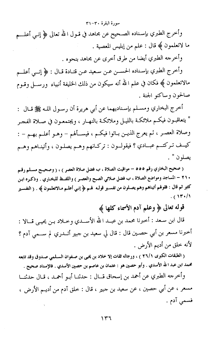 ((الطبقات الكبرى 1/26) ، ورجاله ثقات إلا خلاد بن يحيى بن صفوان السلمي صدوق وقد تابعه محمد ابن عبد الله الأسدي. وأبو حصين هو: عثمان بن عاصم بن حصين الأسدي. فالإسناد صحيح) .