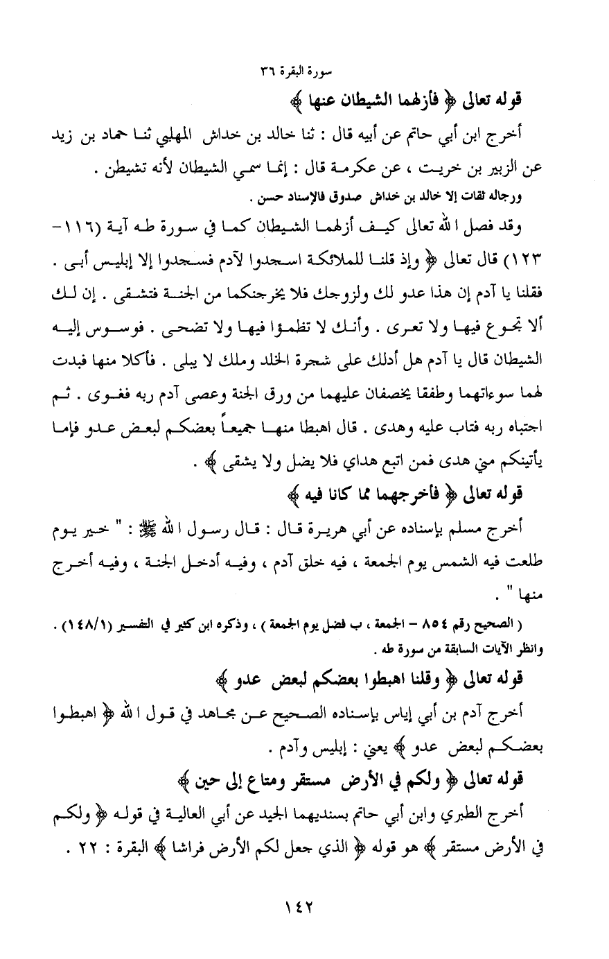 أخرج آدم بن أبي إياس بإسناده الصحيح عن مجاهد في قول الله (اهبطوا بعضكم لبعض عدو) يعني: إبليس وآدم.