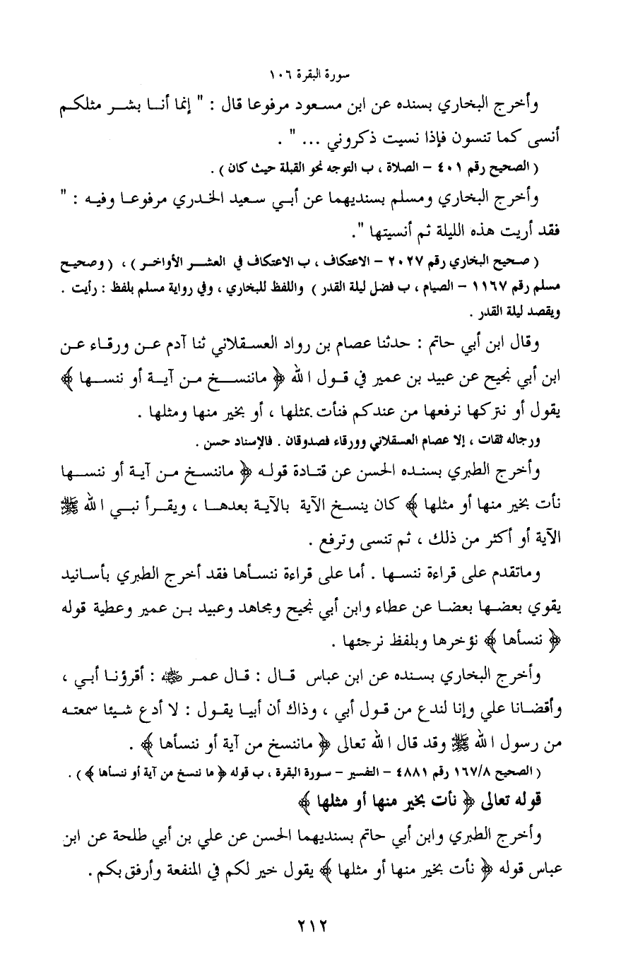(الصحيح 8/167 رقم 4881- التفسير- سورة البقرة، ب قوله (ما ننسخ من آية أو ننسأها)) .
