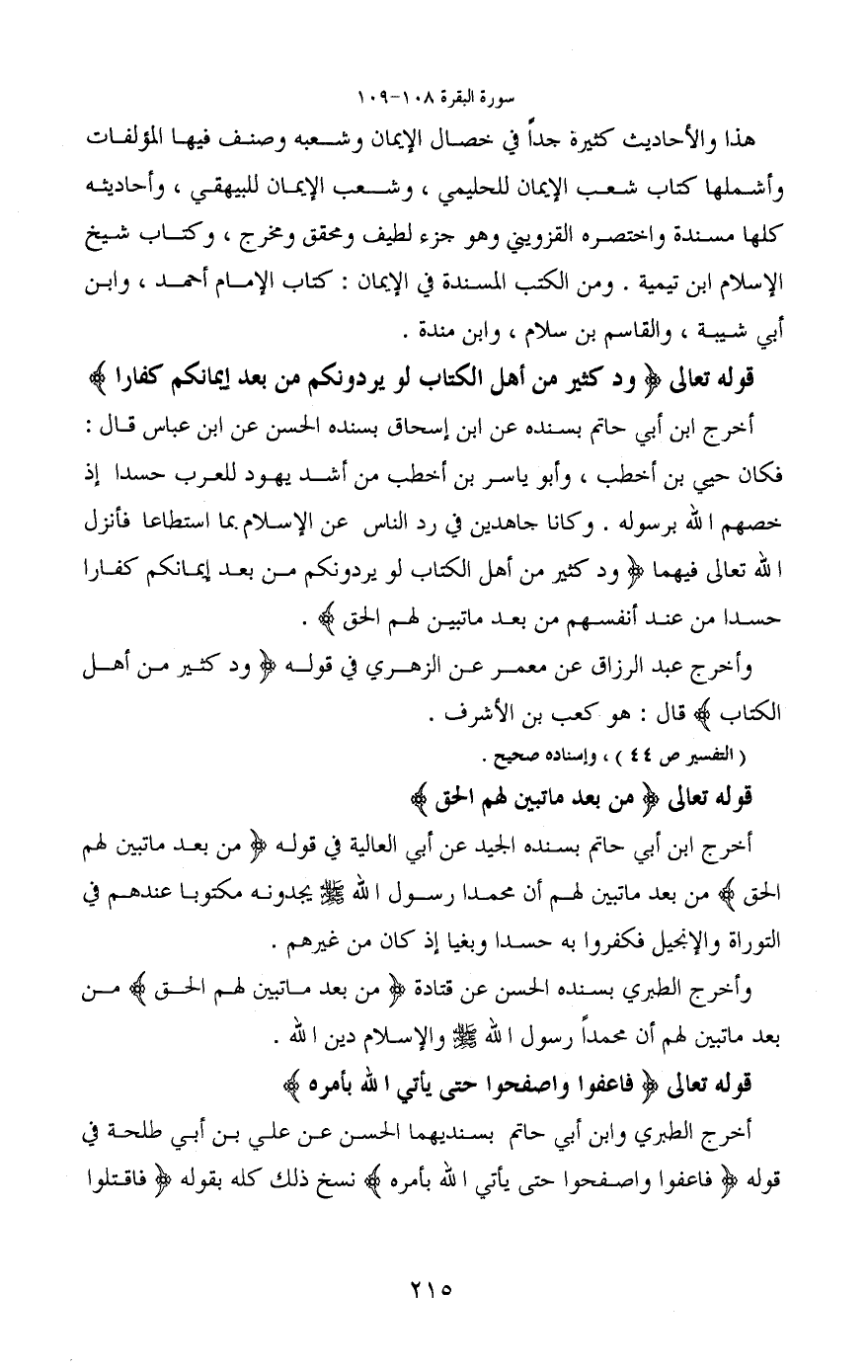 قوله تعالى (ود كثير من أهل الكتاب لو يردونكم من بعد إيمانكم كفاراً)