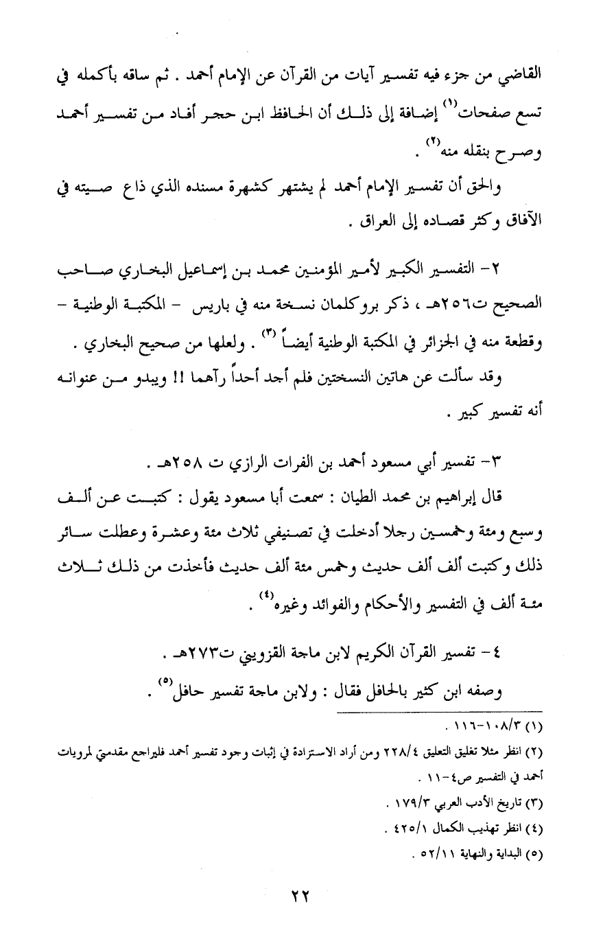 (¬2) انظر مثلا تغليق التعليق 4/228 ومن أراد الاستزادة في إثبات وجود تفسير أحمد فليراجع مقدمتي لمرويات أحمد في التفسير ص 4-11.