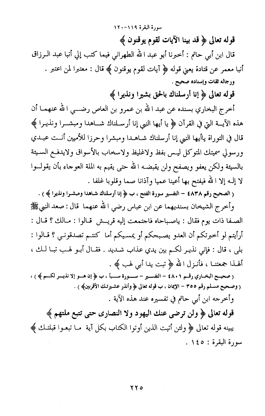 (وصحيح مسلم رقم 355- الإيمان، ب قوله تعالى (وأنذر عشيرتك الأقربين)) .