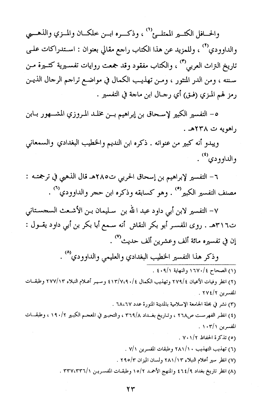(¬8) انظر تاريخ بغداد 9/464 والمنهج الأحمد 2/15 وطبقات المفسرين 1/336، 337.