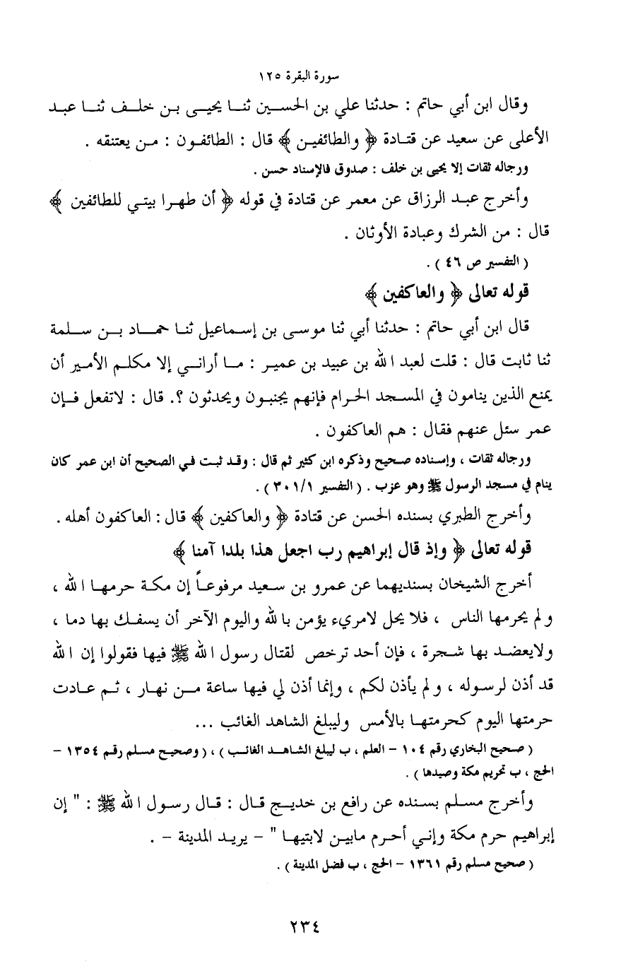 وأخرج الطبري بسنده الحسن عن قتادة (والعاكفين) قال: العاكفون أهله.