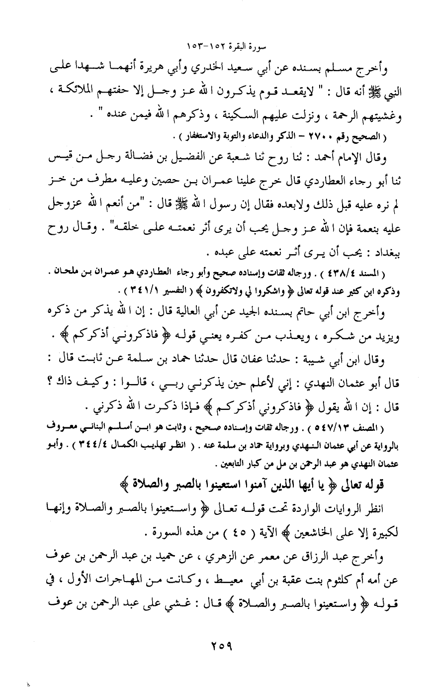 (المصنف 13/547) . ورجاله ثقات وإسناده صحيح، وثابت هو ابن أسلم البناني معروف بالرواية عن أبي عثمان النهدي وبرواية حماد بن سلمة عنه. (انظر تهذيب الكمال 4/344) . وأبو عثمان النهدى هو عبد الرحمن بن مل من كبار التابعين.