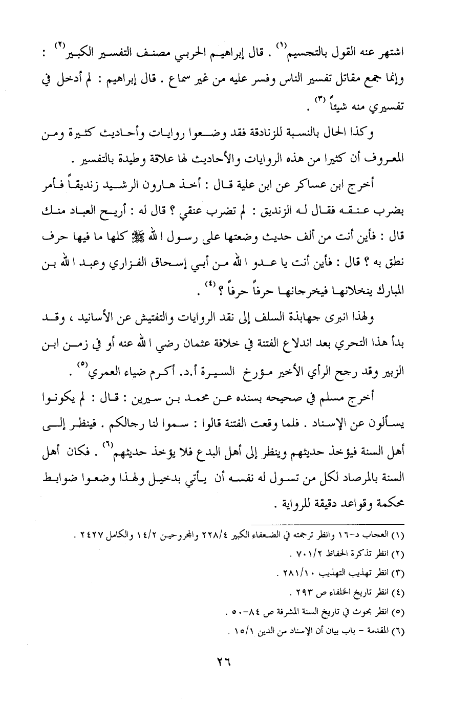 ولهذا انبرى جهابذة السلف إلى نقد الروايات والتفتيش عن الأسانيد، وقد بدأ هذا التحري بعد اندلاع الفتنة في خلافة عثمان - رضي الله عنه - أو في زمن ابن الزبير وقد رجح الرأي الأخير مؤرخ السيرة أ. د. أكرم ضياء العمري (¬5) .