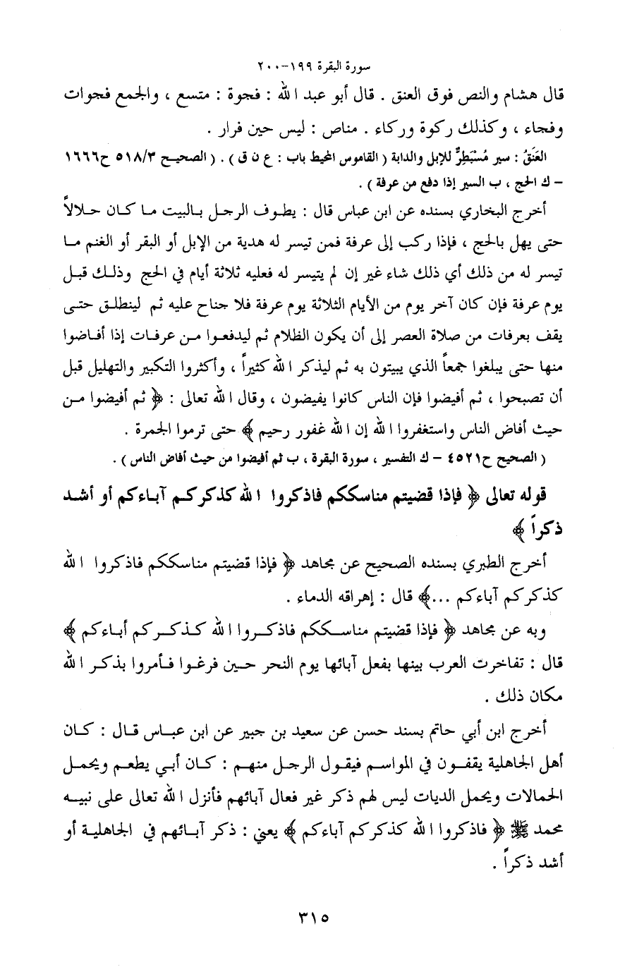 أخرج الطبري بسنده الصحيح عن مجاهد (فإذا قضيتم مناسككم فاذكروا الله كذكركم آباءكم ... ) قال: إهراقه الدماء.