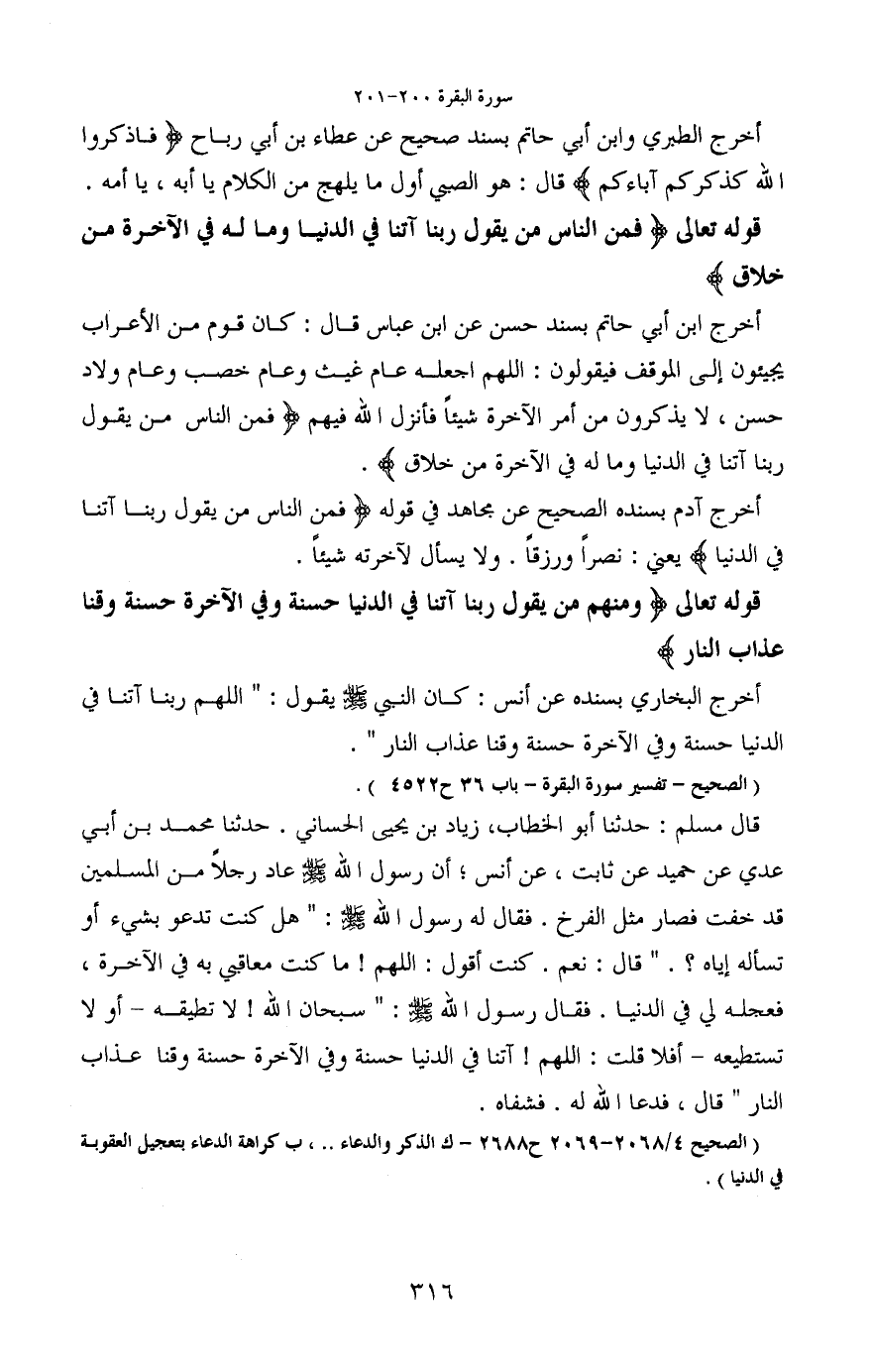 قوله تعالى (ومنهم من يقول ربنا آتنا الدنيا حسنة والآخرة حسنة وقنا عذاب النار)