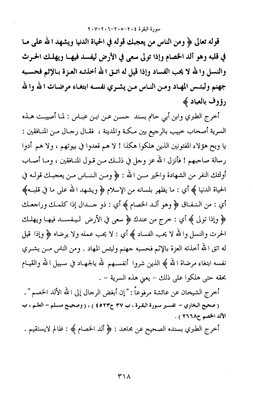 (صحيح البخاري- تفسير سورة البقرة، ب 37 ح 4523) (وصحيح مسلم- العلم، ب الألد الخصم ح 2668) .