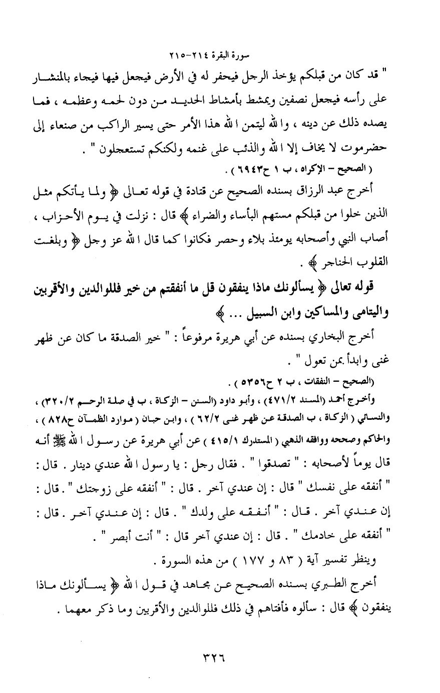 قوله تعالى (يسألونك ماذا ينفقون قل ما أنفقتم من خير فللوالدين والأقربين واليتامى والمساكين وابن السبيل ... )