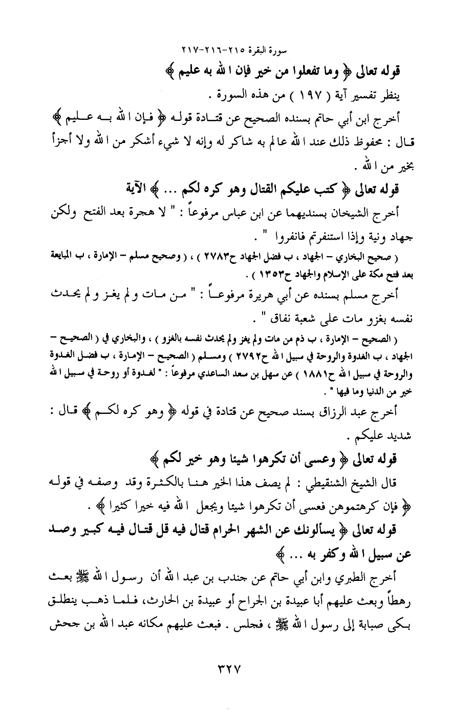قوله تعالى (يسألونك عن الشهر الحرام قتال فيه قل قتال فيه كبير وصد عن سبيل الله وكفر به ... )