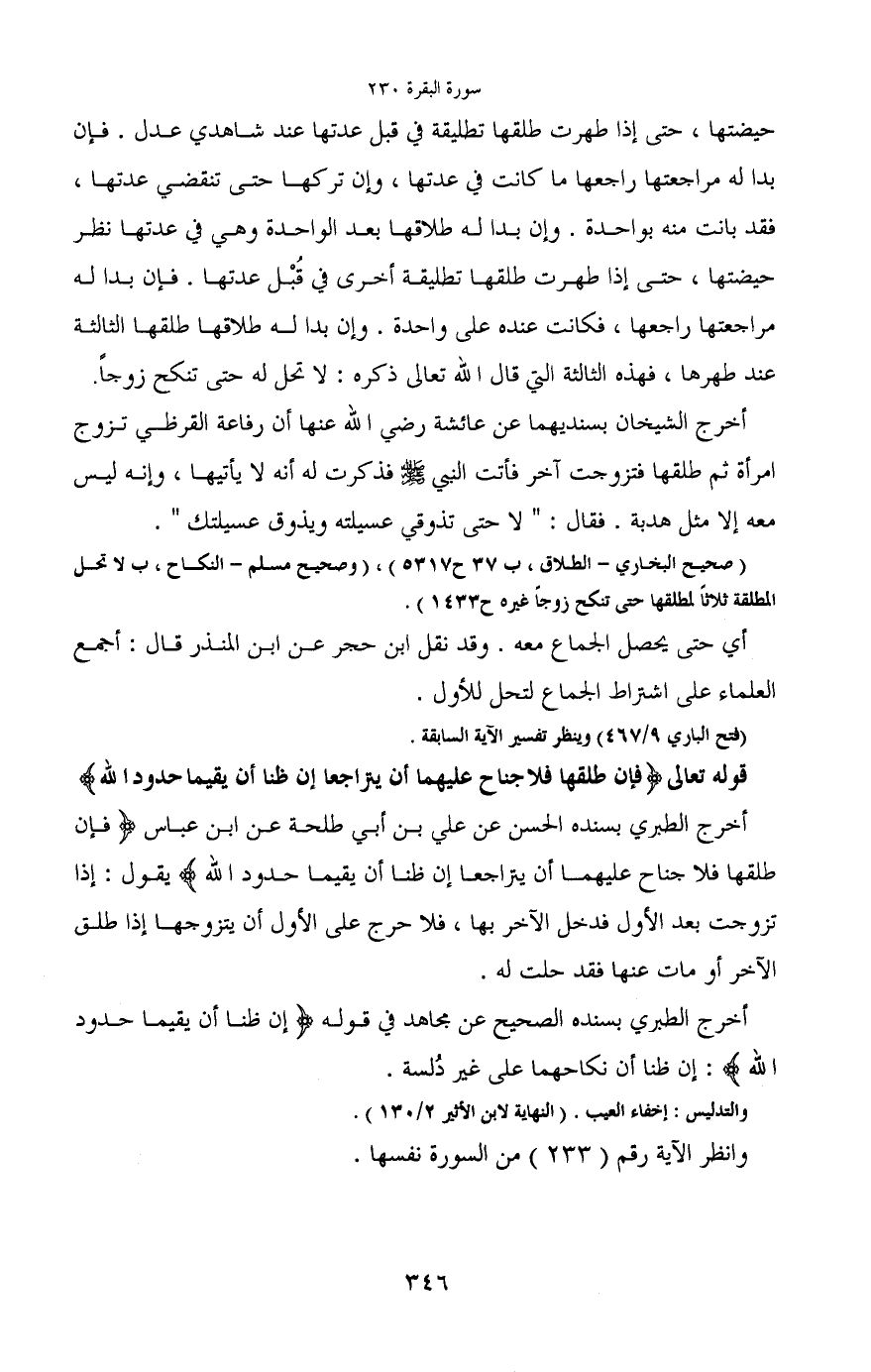 أخرج الطبري بسنده الحسن عن علي بن أبي طلحة عن ابن عباس (فإن طلقها فلا جناح عليهما أن يتراجعا إن ظنا أن يقيما حدود الله) يقول: إذا تزوجت بعد الأول فدخل الآخر بها، فلا حرج على الأول أن يتزوجها إذا طلق الآخر أو مات عنها فقد حلت له.