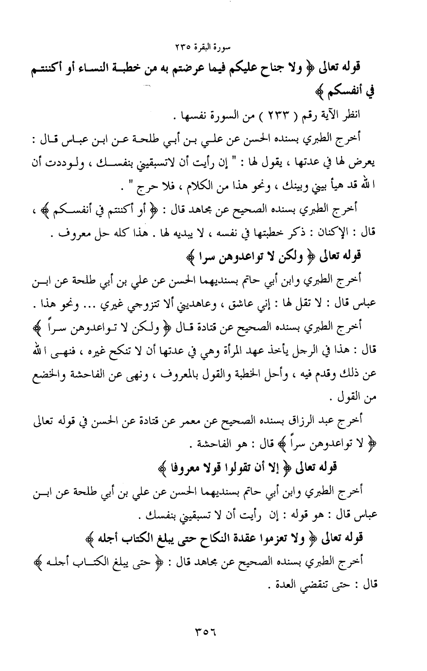 قوله تعالى (وَلَا جُنَاحَ عَلَيْكُمْ فِيمَا عَرَّضْتُمْ بِهِ مِنْ خِطْبَةِ النِّسَاءِ أَوْ أَكْنَنْتُمْ فِي أَنْفُسِكُمْ)