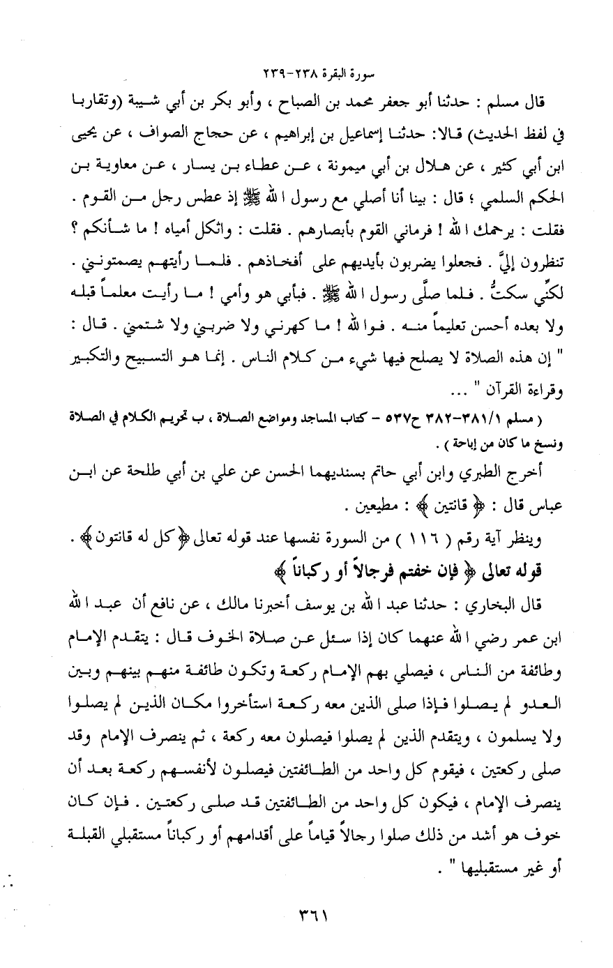 (مسلم 1/381-382 ح 537- كتاب المساجد ومواضع الصلاة، ب تحريم الكلام في الصلاة ونسخ ما كان من إباحة) .