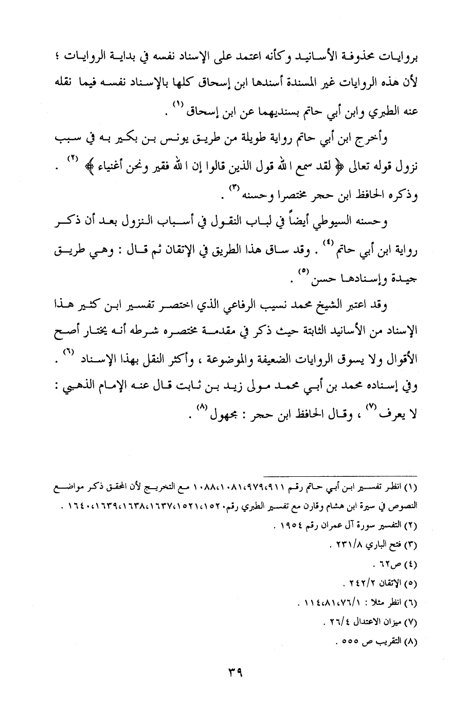 (¬1) انظر تفسير ابن أبي حاتم رقم 911، 979، 1081، 1088 مع التخريج لأن المحقق ذكر مواضع النصوص في سيرة ابن هشام وقارن مع تفسير الطبري رقم 1520، 1521، 1637، 1638، 1639، 1640.