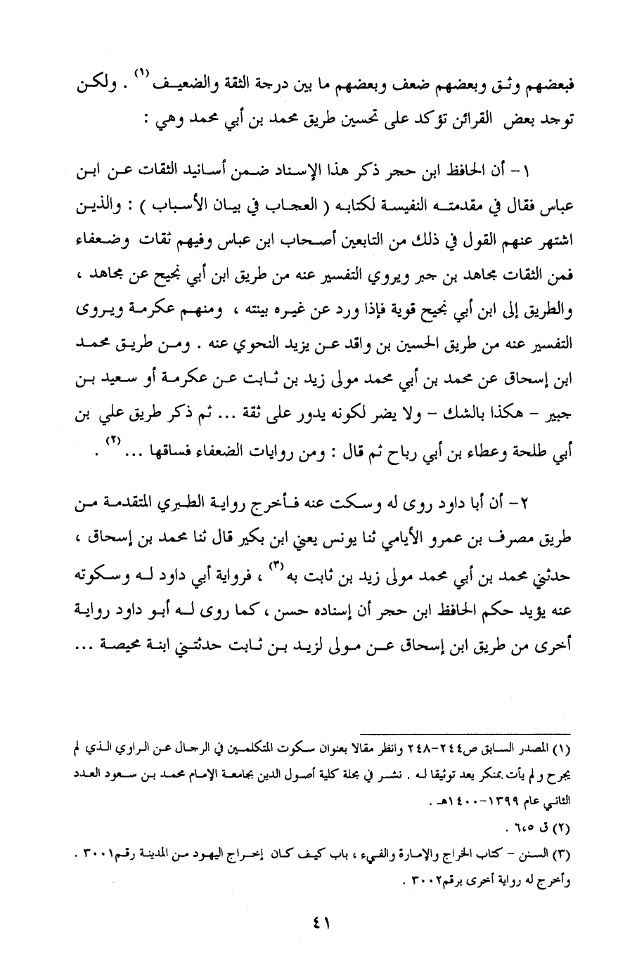 (¬1) المصدر السابق ص 244-248 وانظر مقالاً بعنوان سكوت المتكلمين في الرجال عن الراوي الذي لم يجرح ولم يأت بمنكر يعد توثيقا له, نشر في مجلة كلية أصول الدين بجامعة الإمام محمد بن سعود العدد الثاني عام 1399-1400هـ.