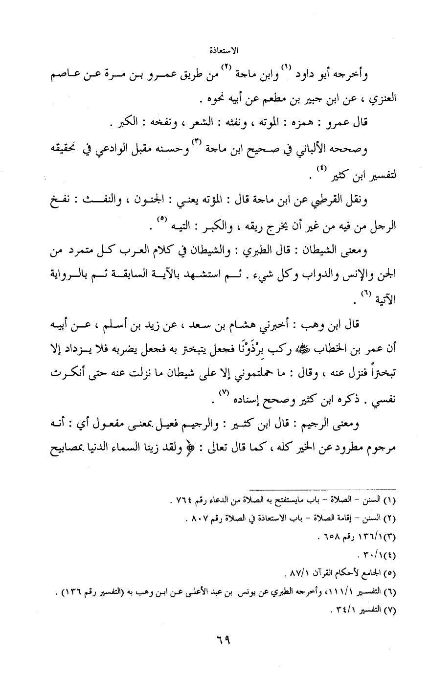 ونقل القرطبي عن ابن ماجة قال: الموته يعني: الجنون، والنفث: نفخ الرجل من فيه من غير أن يخرج ريقه، والكبر: التيه (¬5) .
