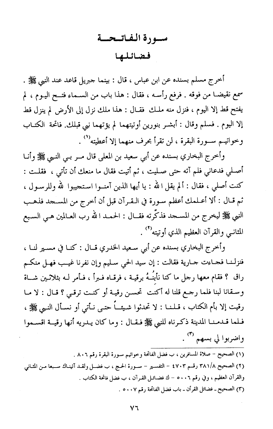 (¬2) الصحيح 8/381 رقم 4703 - التفسير - سورة الحج، باب فضل ولقد آتيناك سبعا من المثاني والقرآن العظيم، وفي رقم 5006 - ك فضائل القرآن - باب فضل فاتحة الكتاب.