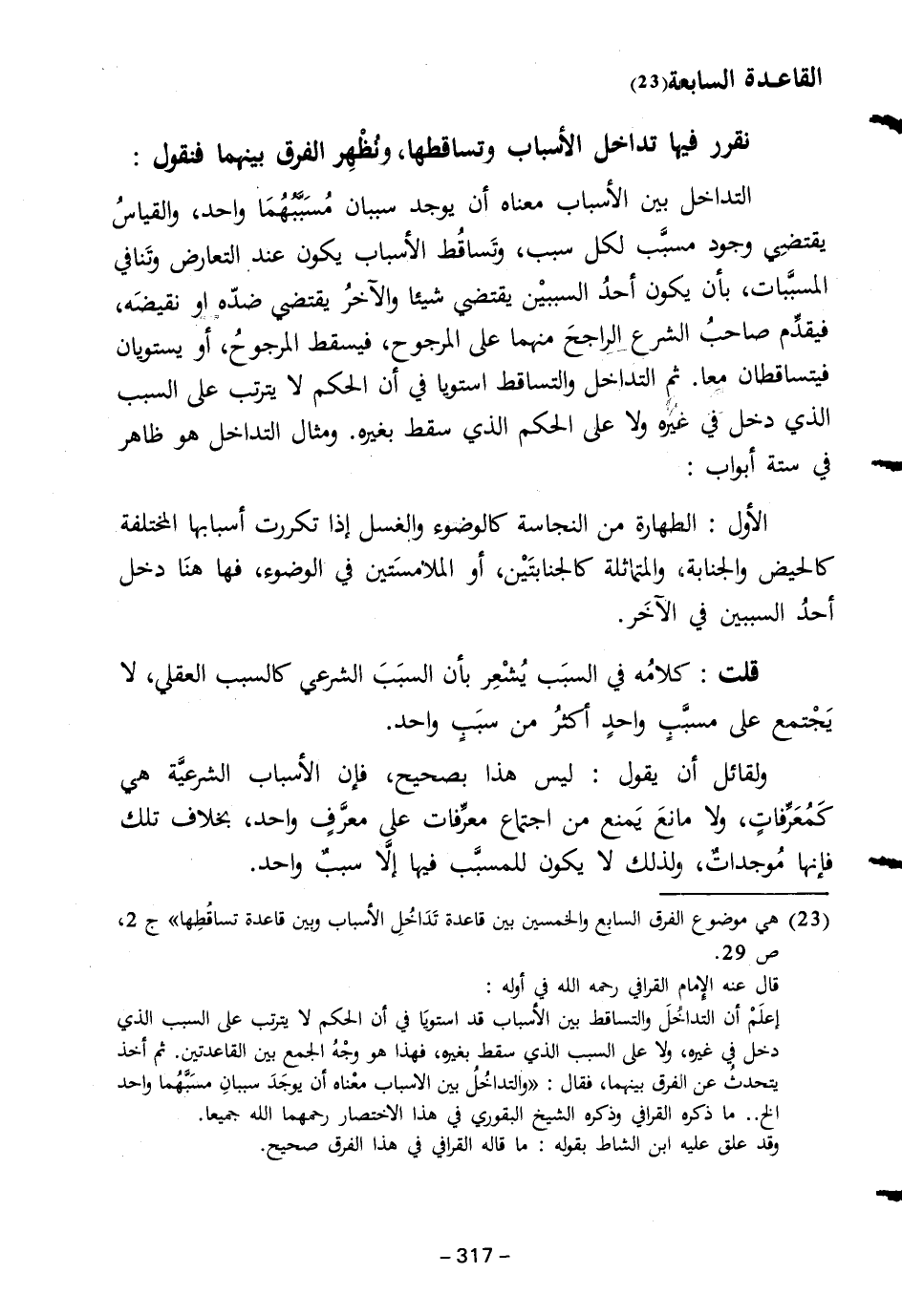 (٢٣) هي موضوع الفرق السابع والخمسين بين قاعدة تَدَاخُلِ الأسباب وبين قاعدة تساقُطِها" جـ ٢، ص ٢٩.