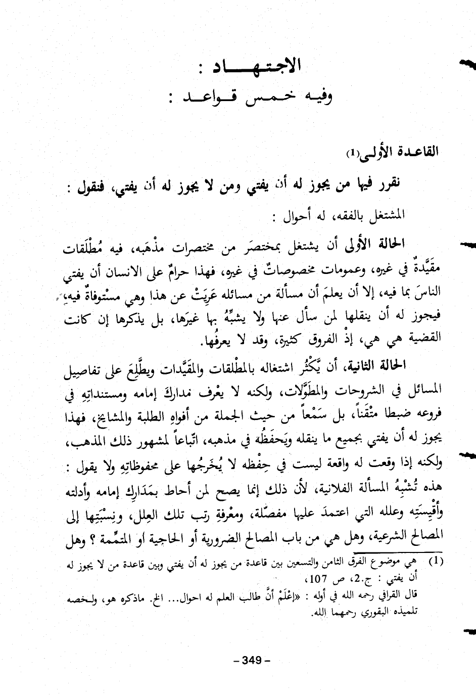 (١) هي موضوع الفرق الثامن والتسعين بين قاعدة من يجوز له أن يفتى وبين قاعدة من لا يجوز له أن يفتي: جـ ٢، ص ١٠٧.
